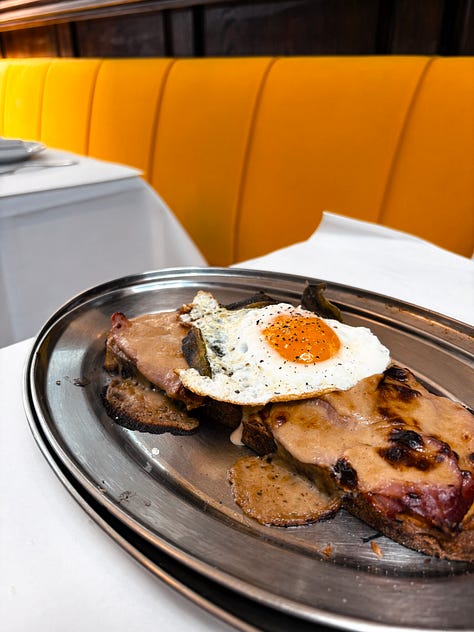 The Croque Madame was served open-faced on a silver platter, with a runny egg and ham slathered in mustard and crusted with béchamel. The fried sage made me feel like I had a little extra money in my pocket. You’re a king for a day, Marlowe. King for a day.