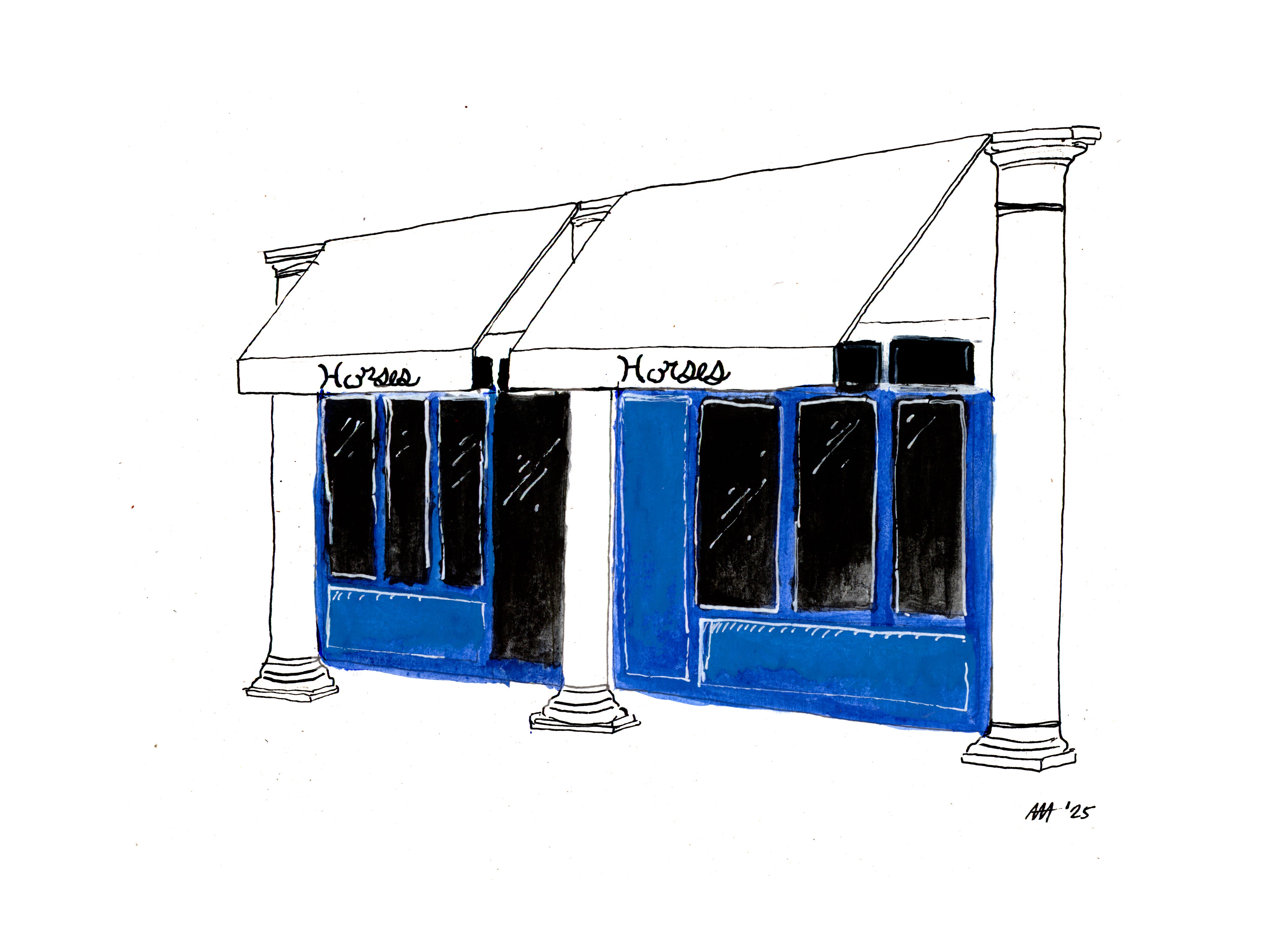 You could know Hollywood for a long time without knowing the stretch of Sunset Boulevard between Stanley and Curson, but you can’t miss the electric blue facade of Horses. The door was open, so I crept in easy as the morning light.